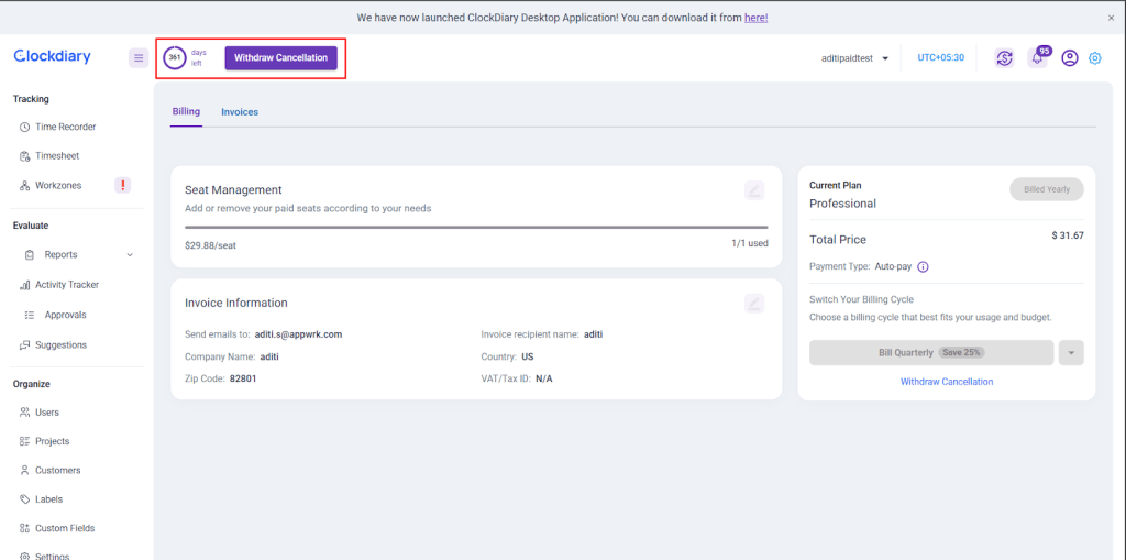 Changed your mind after initiating a cancellation? No problem. You can withdraw your cancellation request anytime before the billing cycle ends. Simply go back to the Billing tab and click Withdraw Cancellation to restore your active subscription.